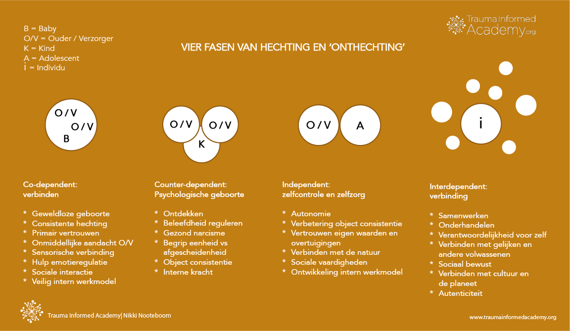 Het proces van hechting is tegelijkertijd het proces van ‘onthechting’. De onthechting bepaalt of iemand een veilige basis heeft kunnen creëren om het leven op te baseren, of niet.